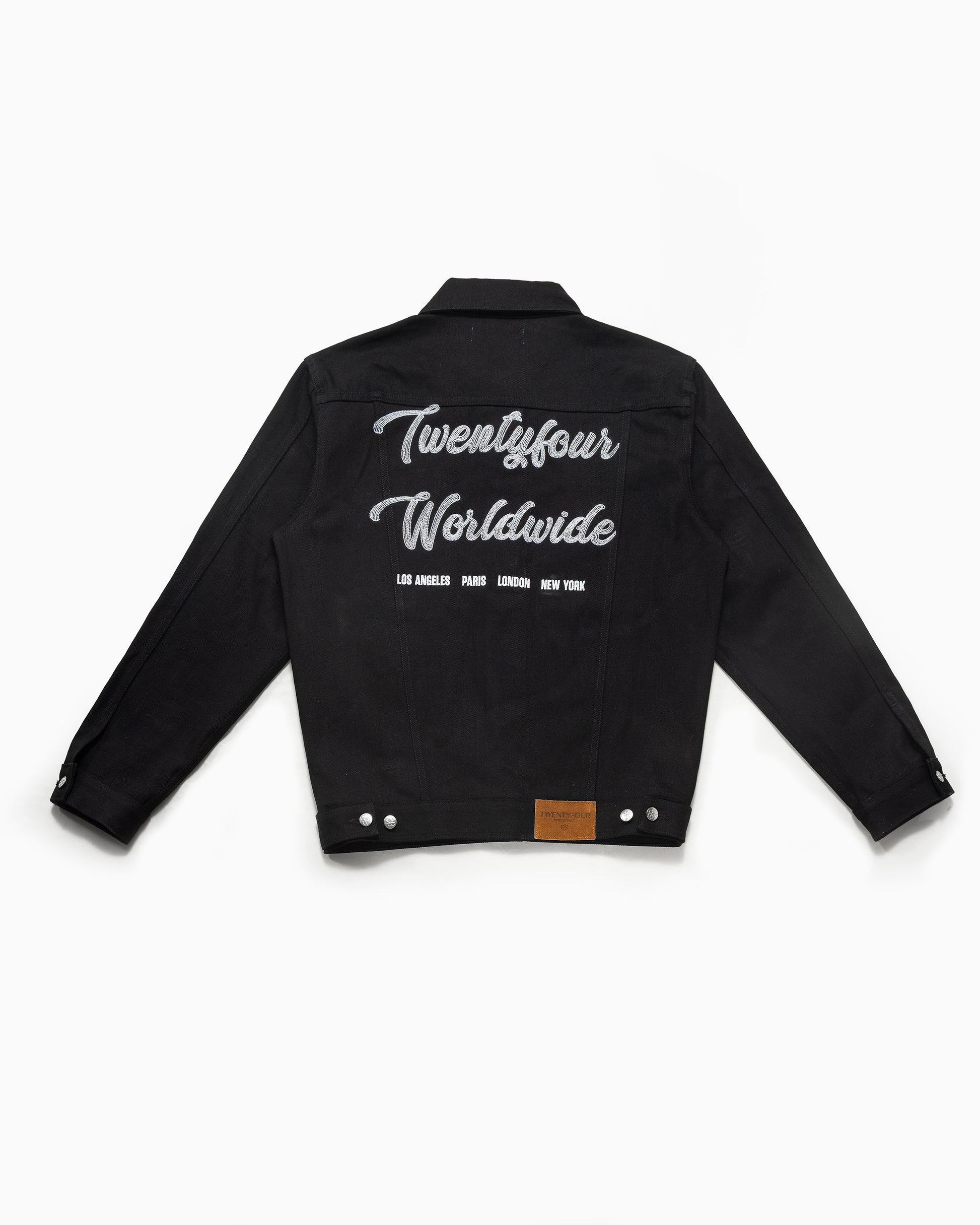 Constructed and designed with the ultimate craftsmanship and fabrications , this denim jackets boasts luxury and streetwear . Chainstitch superimposed logo on the back with custom TwentyFour 6 Globe tack buttons . Slightly cropped for perfect layering aesthetic.